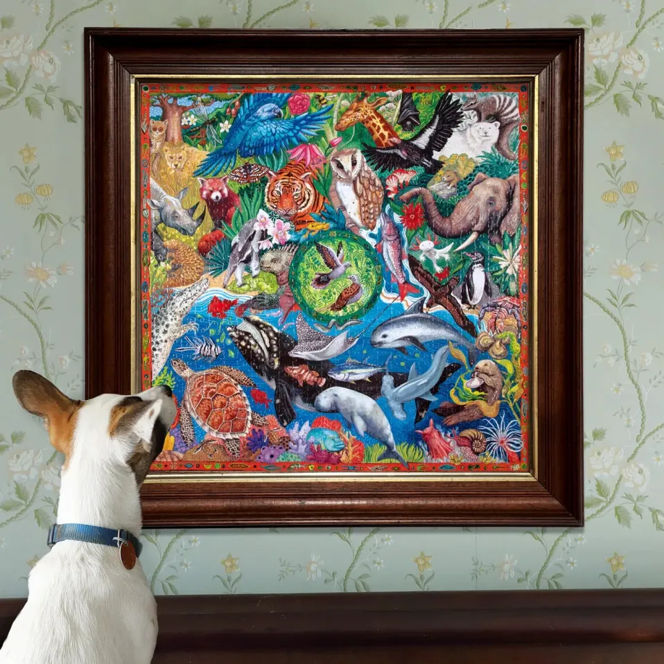 Artist Emma Lopes celebrates the fragile diversity of our planet with this gorgeous array of endangered species. Rich, carefully identified details (down to the micro-organisms that line the edges) will delight and educate the attentive puzzler.