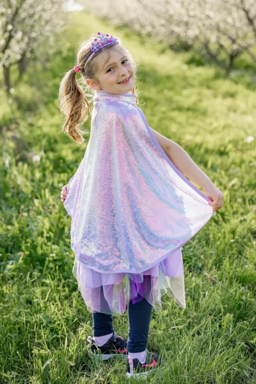 Proudly Made in Canada, this stunning cape is adorned with beautiful lilac sequins, making it shimmer and sparkle in the light. The Lilac Sequins Cape is designed with convenient and easy-to-use velcro closure, allowing children to quickly and easily put it on and take it off. The cape is also lightweight, making it easy for little ones to wear without feeling weighed down. Unforgettable and gorgeous, this cape is of course machine washable!