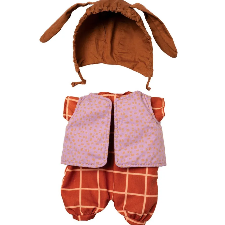 This 3 piece neutral doll outfit includes jumper, vest and bonnet with cute floppy ears. Closures on jumper make dressing easy. A great accessory to add to any child’s collection of award winning Baby Stella dolls and accessories.