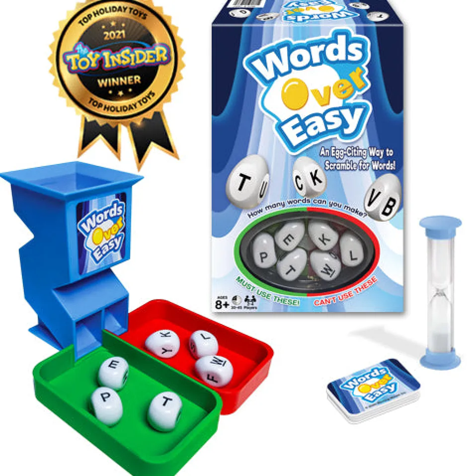 How do you like your words? Over easy, of course! Pop the Letter Eggs into the Egg Sorter to see which letters you can use to spell words. Letter Eggs that fall into the green side are good, while Letter Eggs that land on the red side are rotten. Players scramble to come up with words using all the letters, face-up, on the “good eggs” and none of the letters from the “rotten eggs”. Great for word game players of all ages, so get cracking!