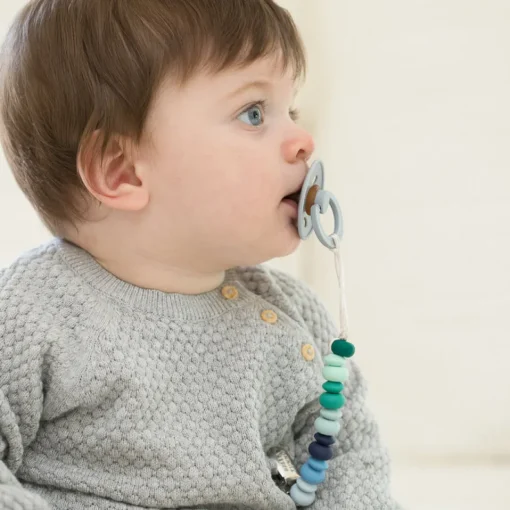Never lose a pacifier again and look good while doing it. Our silicone pacifier clips are easy to mix and match with any outfit and the silicone beads create a clean, modern look. They work with any pacifier and keep them close, clean and most importantly, off the floor. Designed with a stainless steel clip that makes the entire product dishwasher safe, you can really clean these little darlings. In over 15 color options, our paci clips are what all the babies are wearing this season!