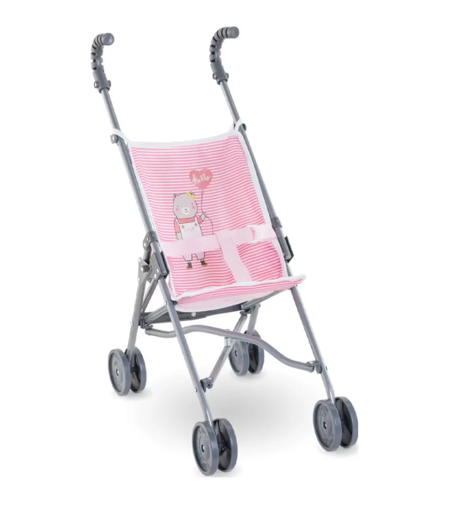 Toddlers can take their adorable dolls and stuffed animals around in comfort with this stylish pink striped umbrella stroller for kids. This toy stroller has an adorable striped print on a nylon fabric seat and frame with safety buckle. Doll umbrella stroller easily folds and unfolds.