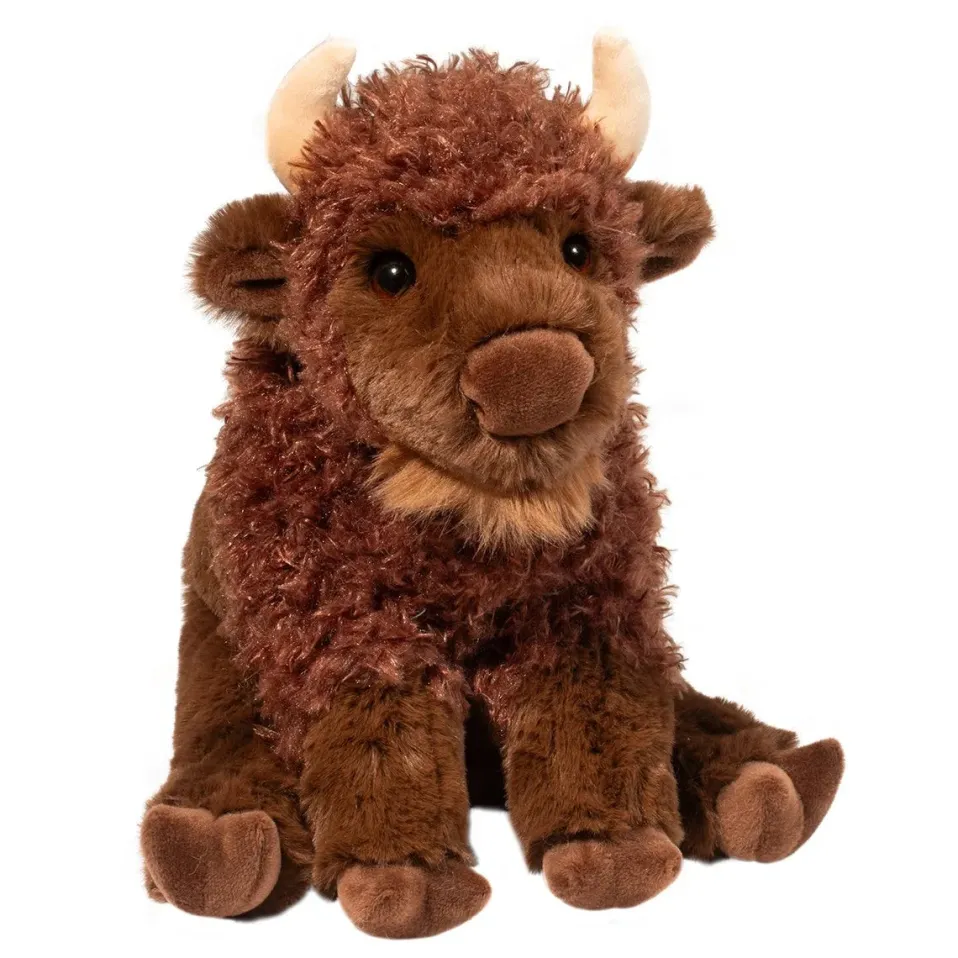 We’ve managed to fit the big personality of our Soft Buffalo plush, Buffie, into a compact and cuddly package! Whether you know them as Buffalo or American Bison, this awe inspiring creature has been roaming the plains of North America since prehistoric times. Buffie has been outfitted in a coat of chocolate brown plush to match the shaggy appearance of his real life counterparts. Cloven hooves detail his feet and we’ve accented his chin with a fluffy tuft of hair. Buffie’s large, dark eyes will connect on an emotional level and you’ll want to snuggle up with this iconic symbol of the Wild West as often as you’re able. Make Buffie the Buffalo part of your ranch today and this huggable stuffed animal is sure to please!