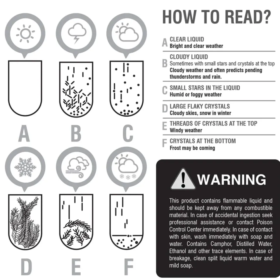 How the Storm Glass works is still a mystery, but it is believed that electromagnetic changes in weather patterns activate the crystals inside (sealed glass chamber fill with crystals when air pressure decreases).