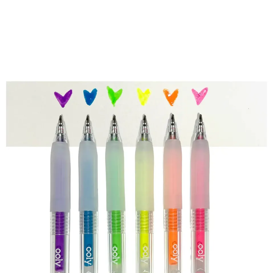 Set of 6 neon gel pens with dimensional, glossy ink