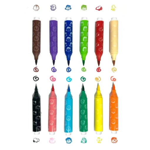 This set of double ended markers have a two-in-one design that features a PEANUTS character stamp on one end and a brush marker on the other. Use the brush side to create your picture and then use the stamp side to add adorable final touches! The set includes 18 non-toxic markers in a rainbow of colors, making a great gift for creative kiddos everywhere!