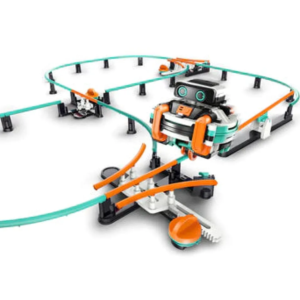 and dozens of track layouts from over 180 durable, plastic parts. Choose any of the 26 configurations in the manual or use your imagination to invent your own! Combine the snap-together track segments with the three special connectors – the seesaw, the splitter, and the cross switch – to add twists, turns, and obstacles to your routes.
